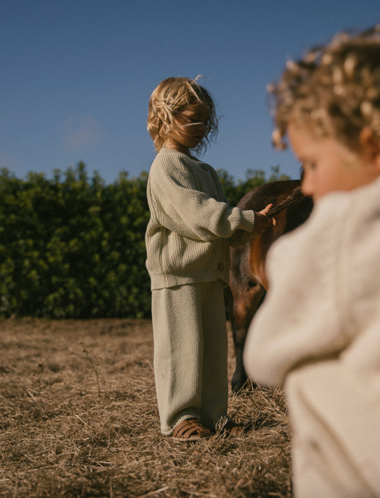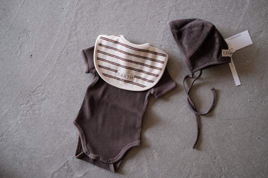 天然の植物を染料にし時間をかけ染める草木染子ども服ブランド。 色の仕上がりが毎回違うのも、合成染料とは違う魅力です。 色を維持するための人工的な方法を使用せず、時が経つにつれ色の変化を楽しんでいただけます。 同じ種類の植物でも、それぞれ含まれている色素が一定ではないため、毎回全く同じ色は出せません。一期一会の楽しみがあるEARTH。GOTSオーガニックコットン100%で作られたすべての製品は月齢の小さなお子様も安心してご着用いただけます。パイル素材のスタイ(ビブ)がよく吸収し、優しい肌触りで大変人気です。