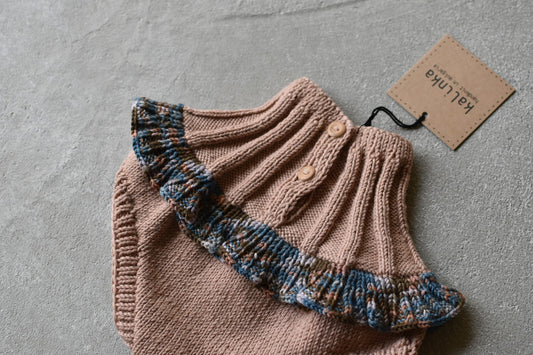カリンカのニットアイテムはブルガリアで一つ一つ丁寧に手編みでお作りしています。春夏シーズンはOEKO-TEX認証のコットンやリネン、秋冬シーズンでは上質なメリノウール100% (Mulesing free) でお作りし、環境、人、動物にも優しい素材選びをしています。カリンカのつけ襟や帽子などの小物もとても人気があり、カリンカデビューにもおすすめです。