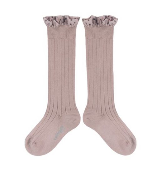 Maud_Polka Dots Ruffle Knee-high Socks_Vieux Rose