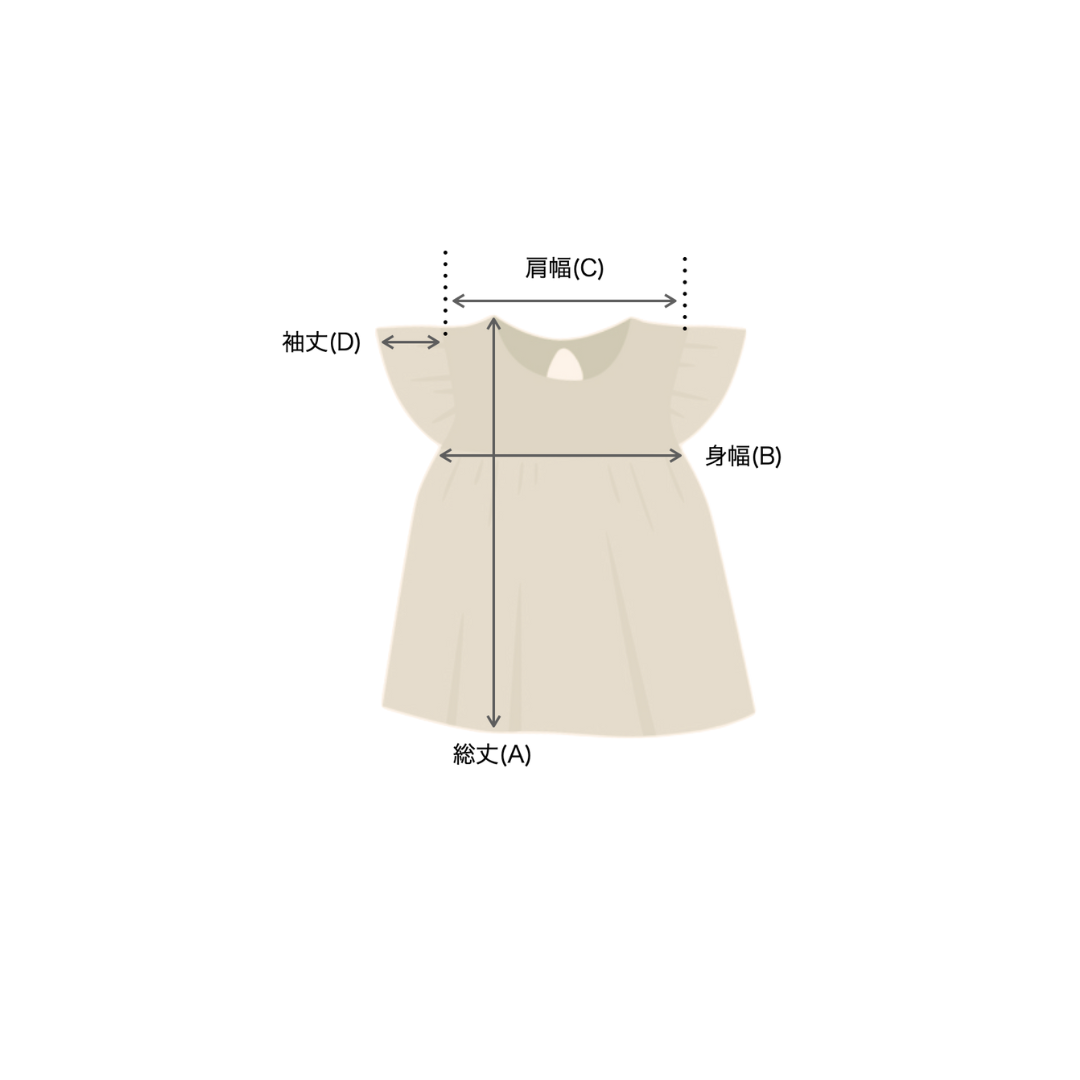 | in cm | 総丈(A) | 身幅(B) | 肩幅(C) | 袖丈(D) |