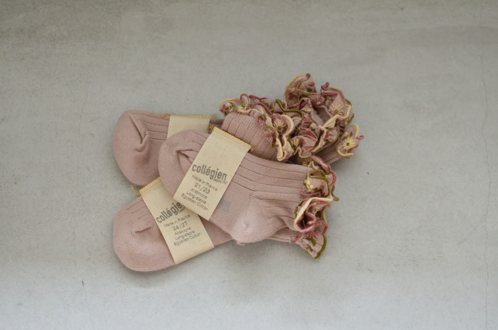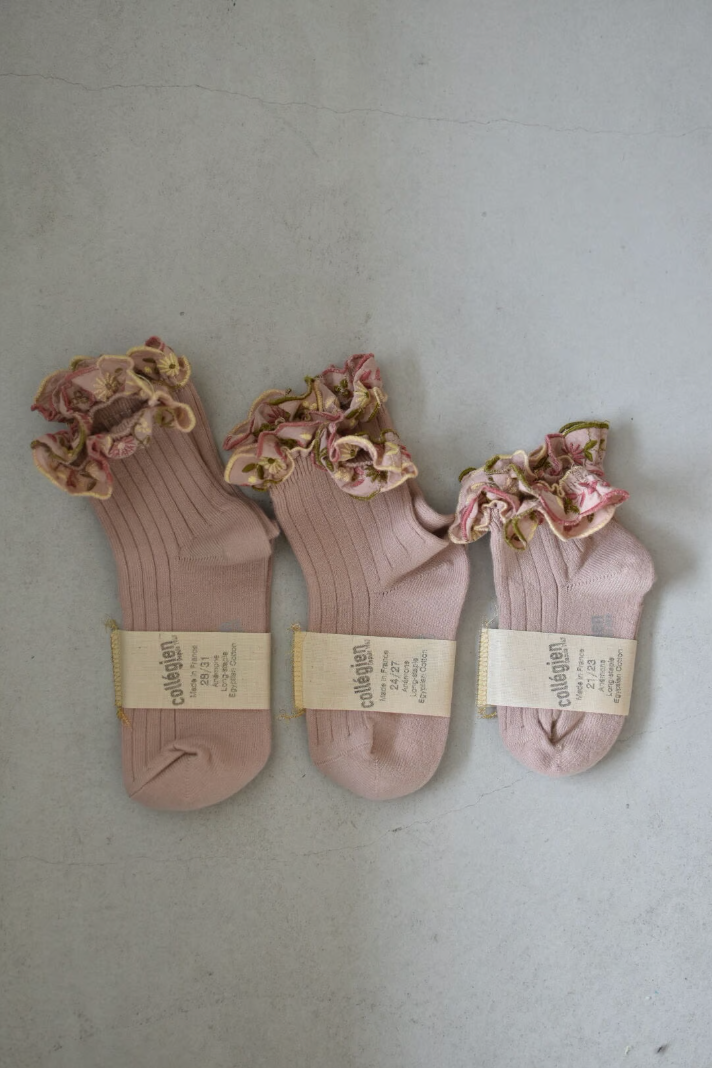 Anémone_Embroidered Ruffle Ribbed Ankle Socks_Vieux Rose(Last.1)