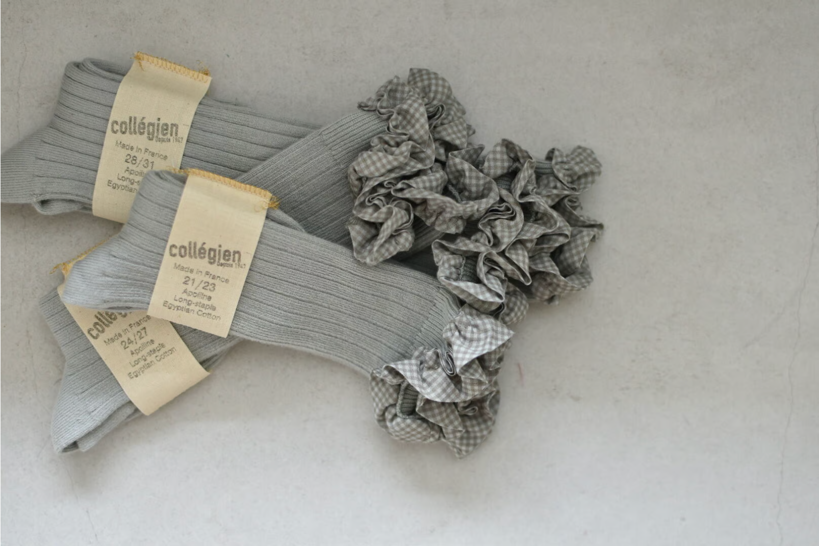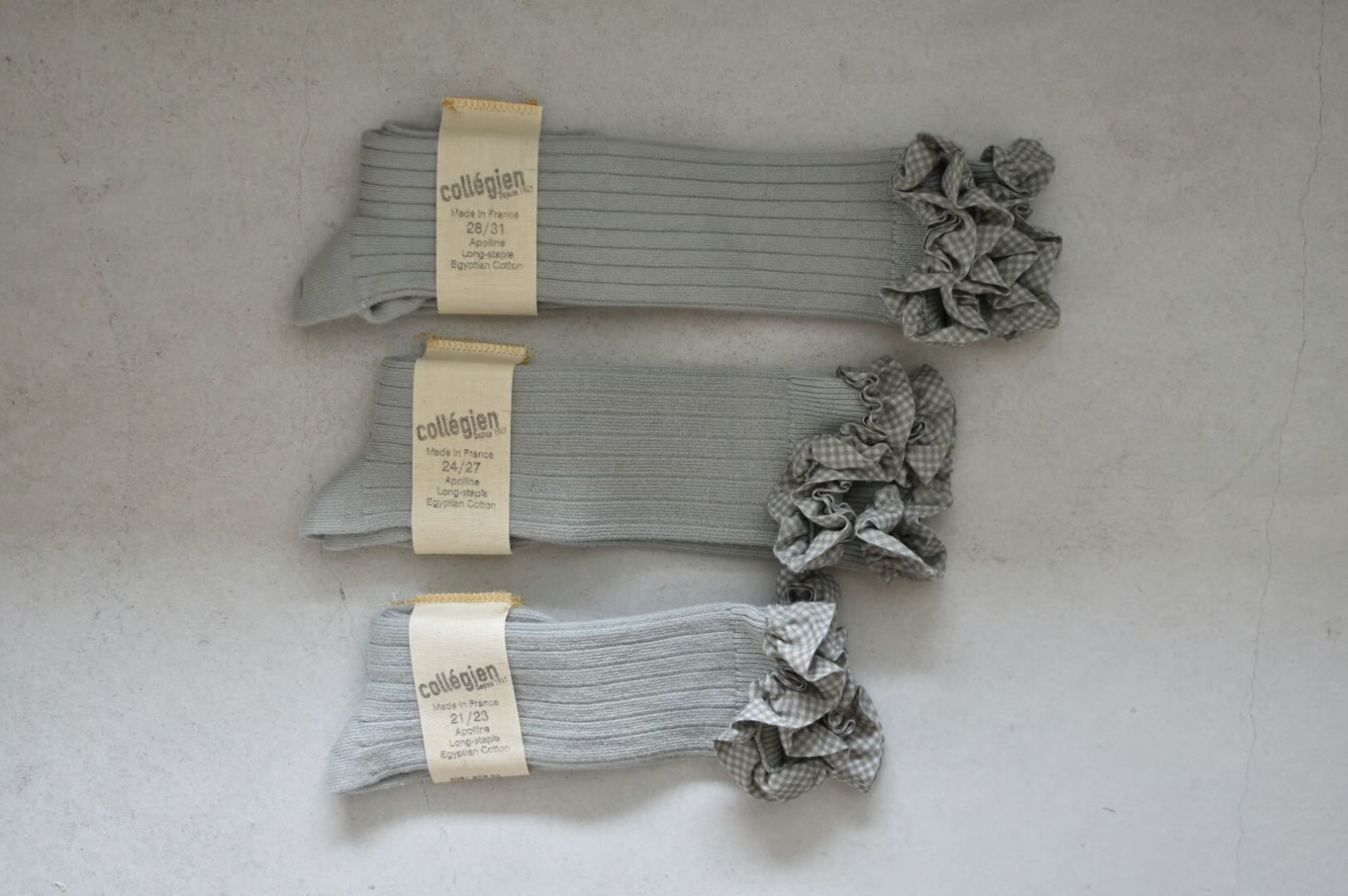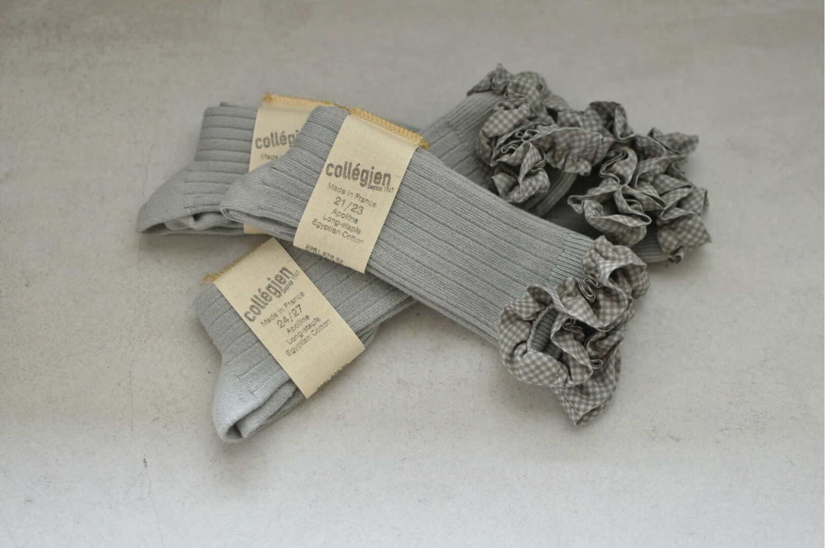 Collegienの製品は全て自社工場で製造しており、ハンドメイドだからこそ実感いただける柔らかな肌触りとユニークなデザインは世界中で愛され続けています。Collégienの商品は製品染めで作られていおり、綿の種類や水の塩分など、その時々によって色に変化があります。毎回、少し色の仕上がりが違う点を楽しめるユニークな靴下です。最高品質のエジプト綿を使っており、使用する糸はすべて「Oeko-Tex Standard 100」の認証を受けています。また、製品染め加工は、人の健康と環境を守るためのREACH規格に準拠しています。