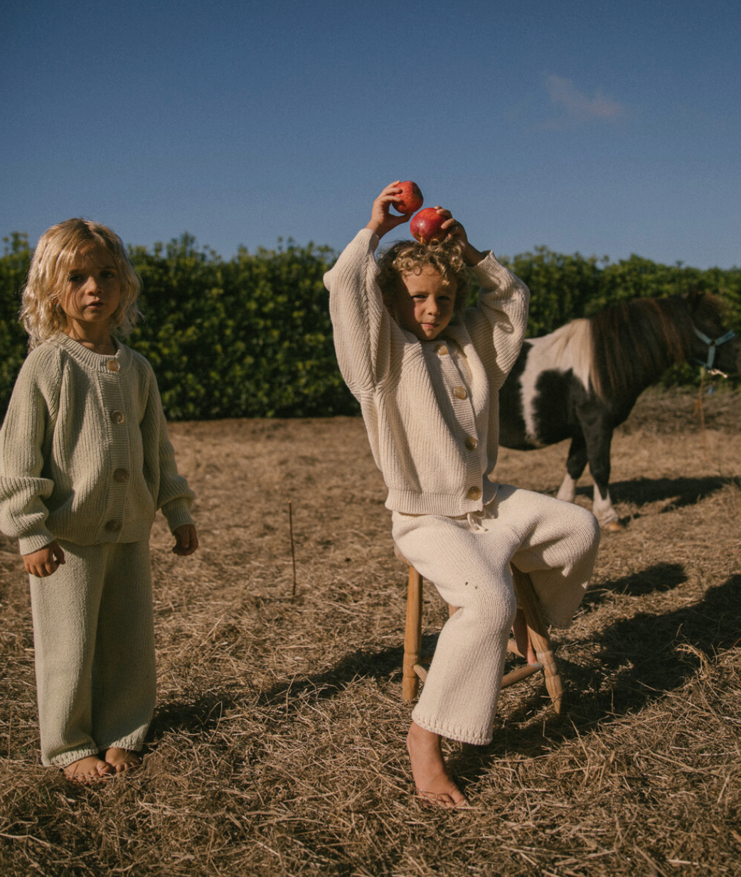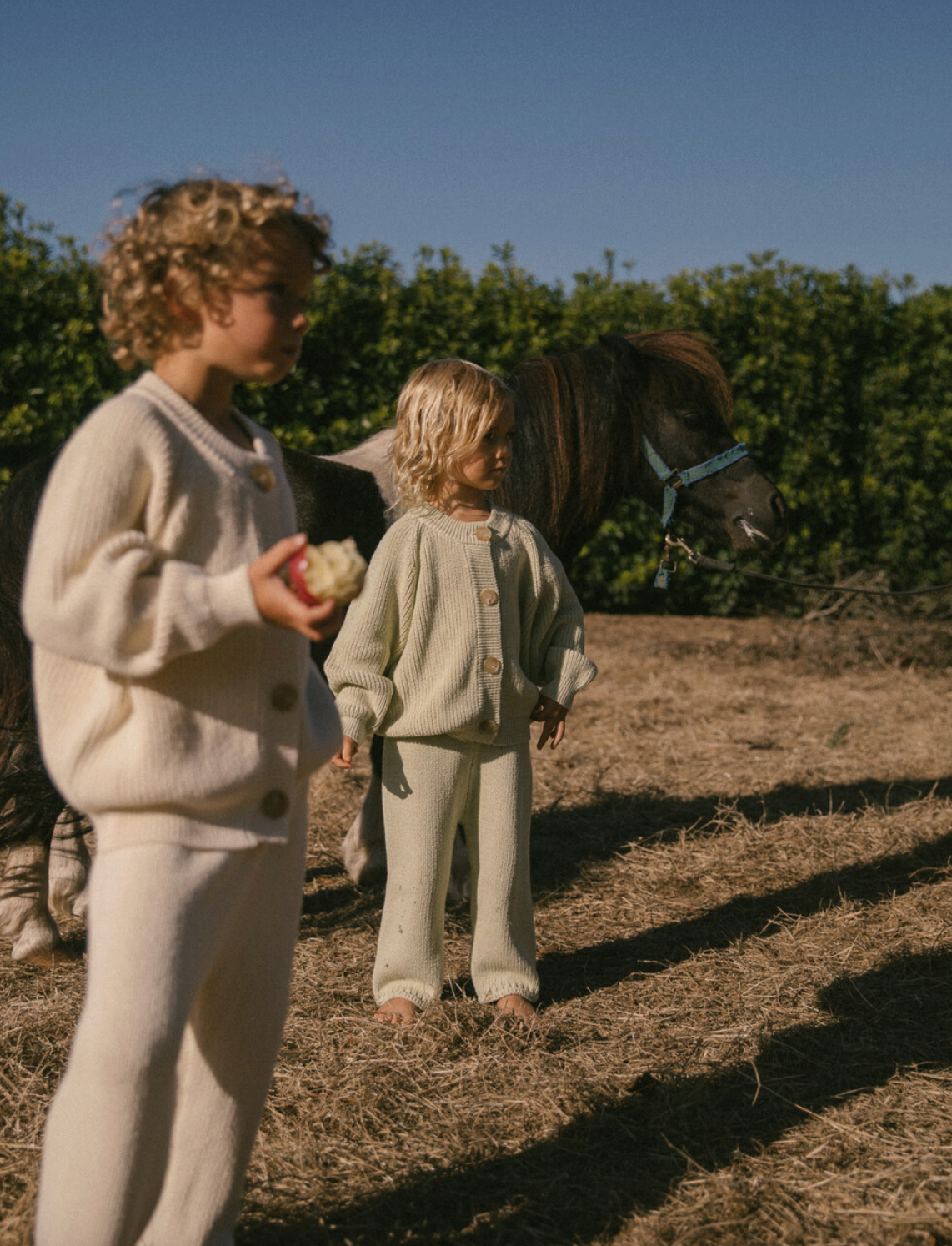 大きなボタンがアクセントになった、厚手でふんわりとしたニットカーディガンです。