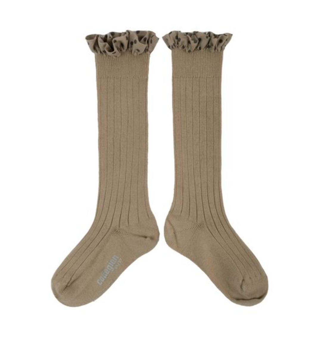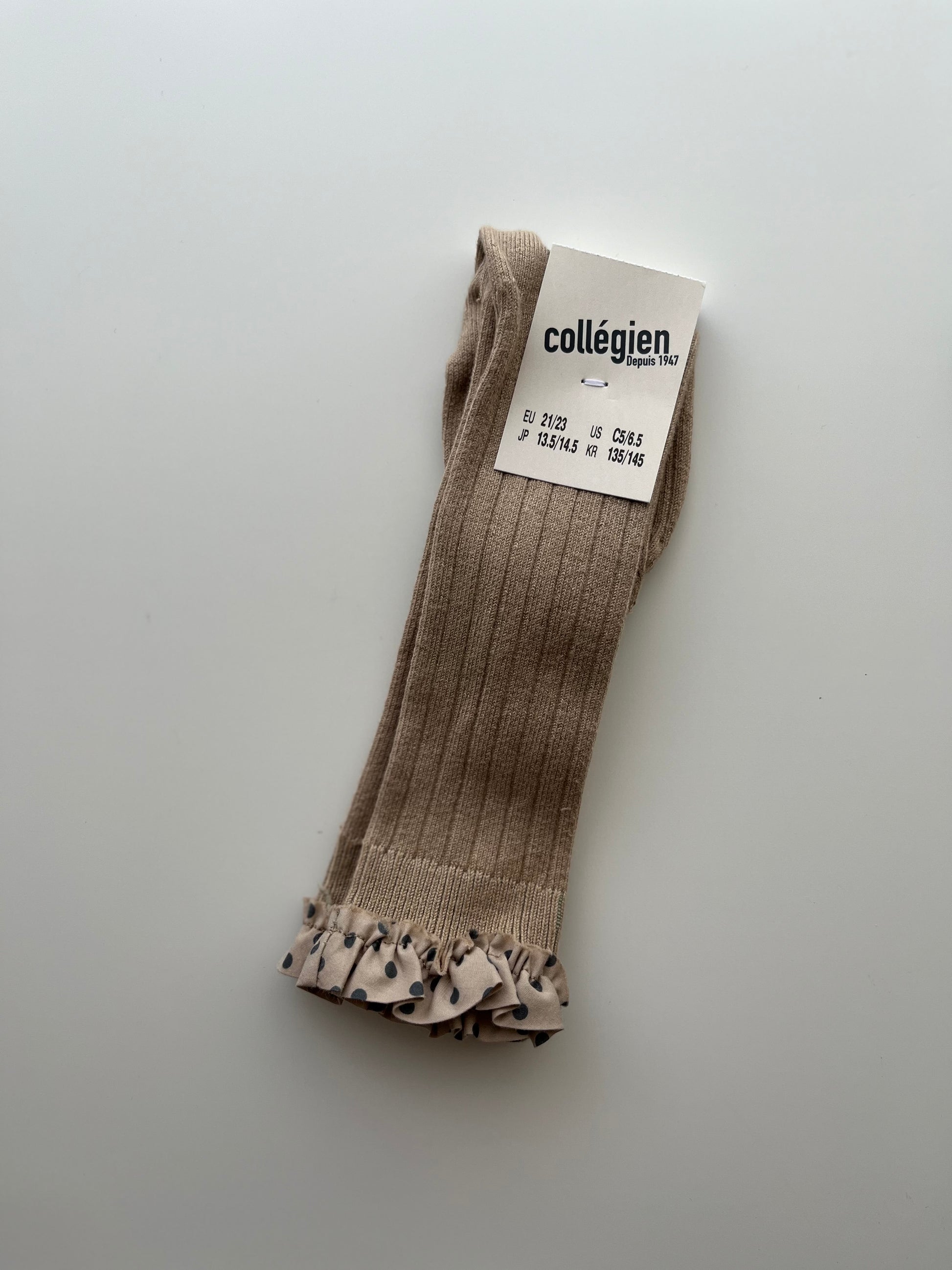 Maud_Polka Dots Ruffle Knee-high Socks_Petite Taupe