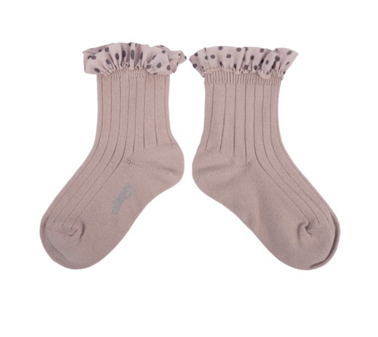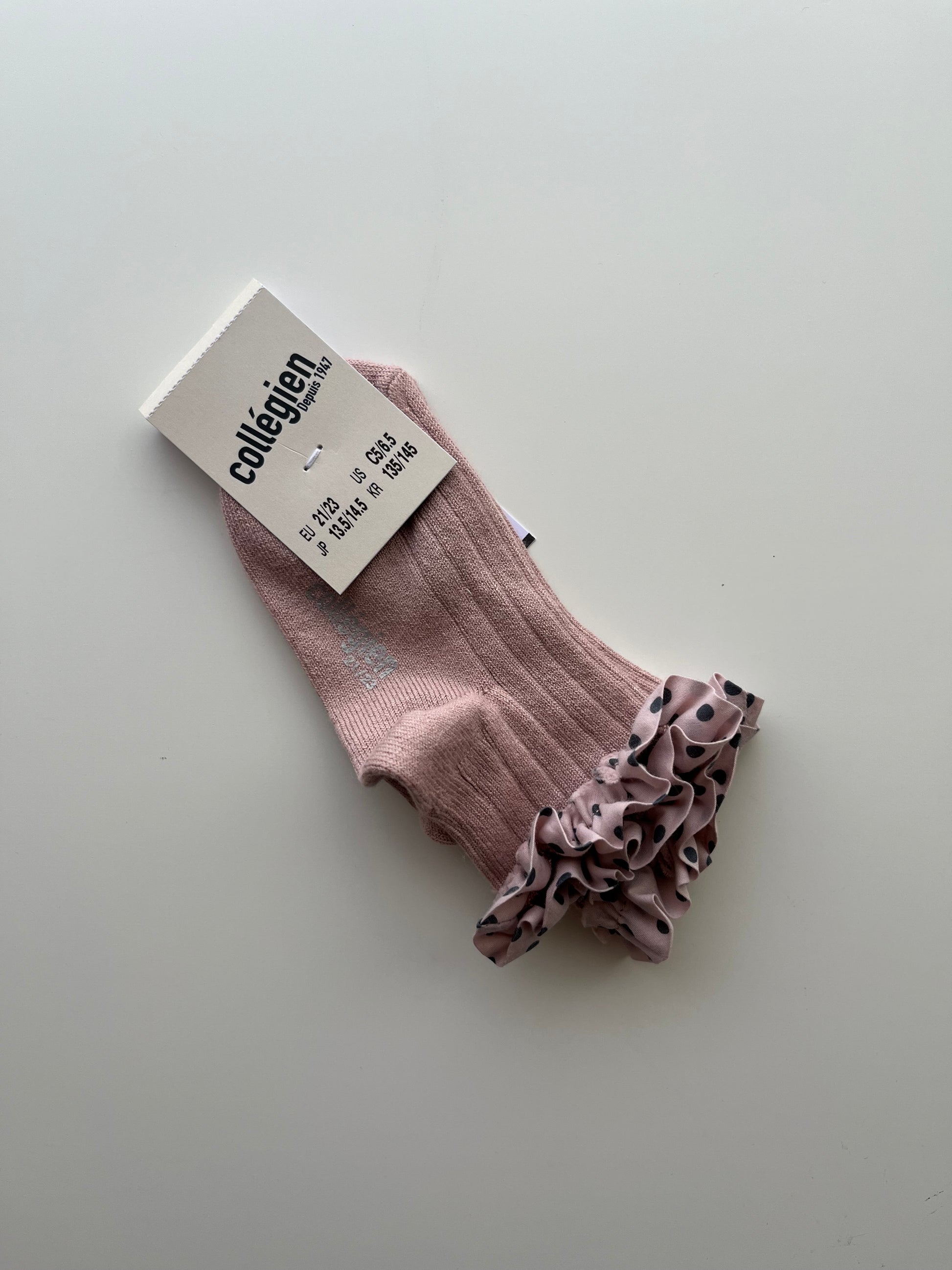 Emilie_Polka Dots Ruffle Ankle Socks_Vieux Rose
